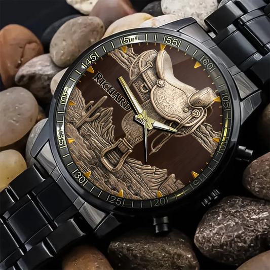 Personalized Saddle & Western Style Watch with Custom Name - A Unique Timepiece for Equestrian Enthusiasts