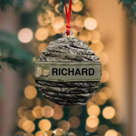 Personalized US Veteran/ Solider Camo Rank Ornament