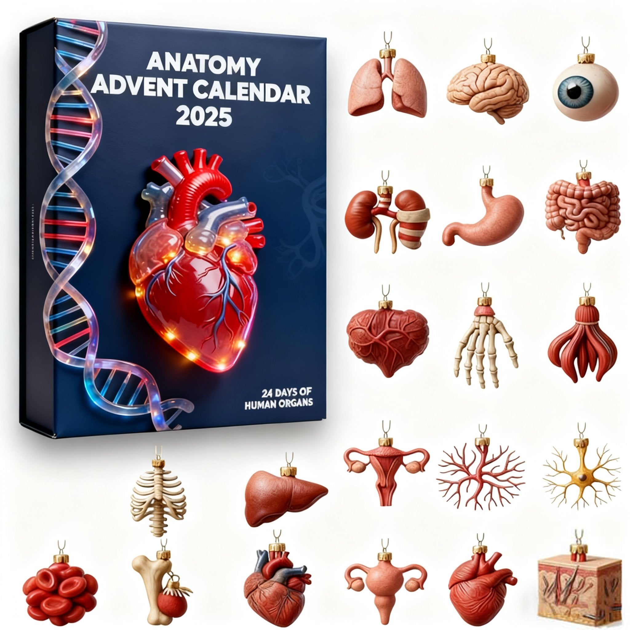 Forget the chocolateāunpack the anatomy! The 2025 Anatomy Advent Calendar features 24 detailed miniature organ ornaments, from the heart and brain to the lungs and kidneys. Each piece is meticulously crafted with realistic textures and colors, turning biology into an everyday surprise filled with curiosity and laughter. It's a clever and whimsical way to celebrate the Christmas countdownāeducational, surprising, and fun.