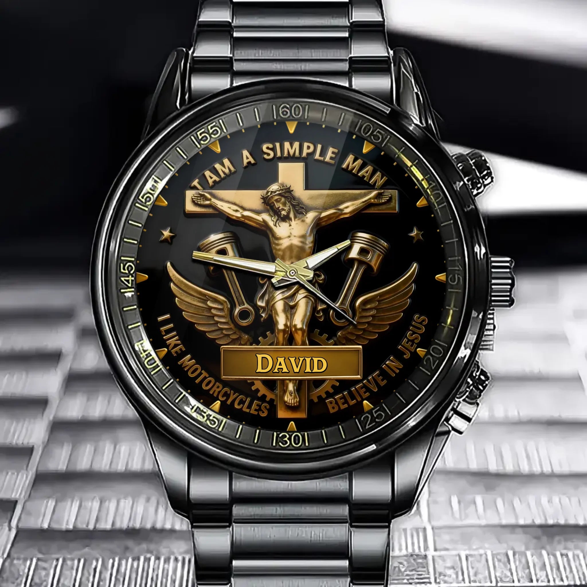 Custom Motorcycle Watch - Personalized "I Believe In Jesus" Design