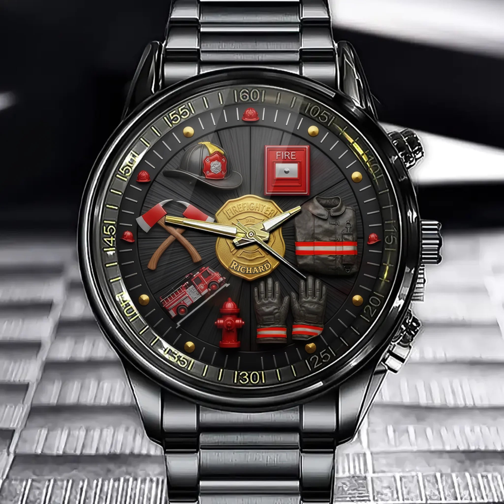 Guardian of Flames Personalized Watch - Your Name in the Firefighter's Badge