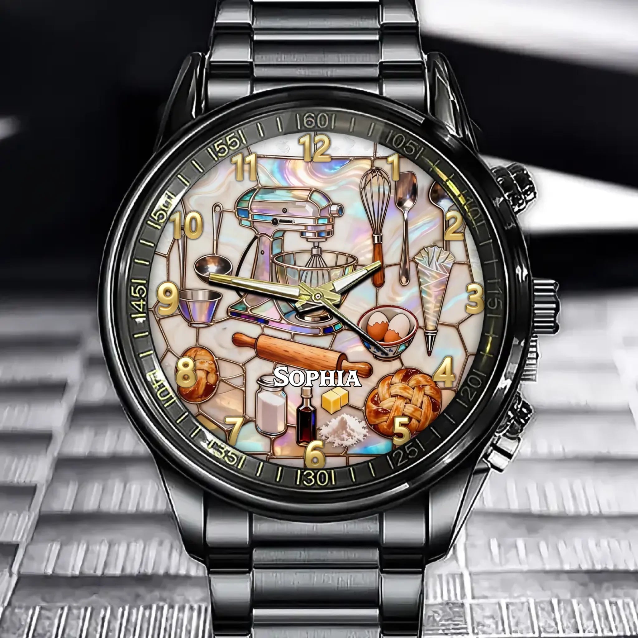 Personalized Baking Theme Watch - Mixer & Pastry Tools Design And Custom Name Personalization