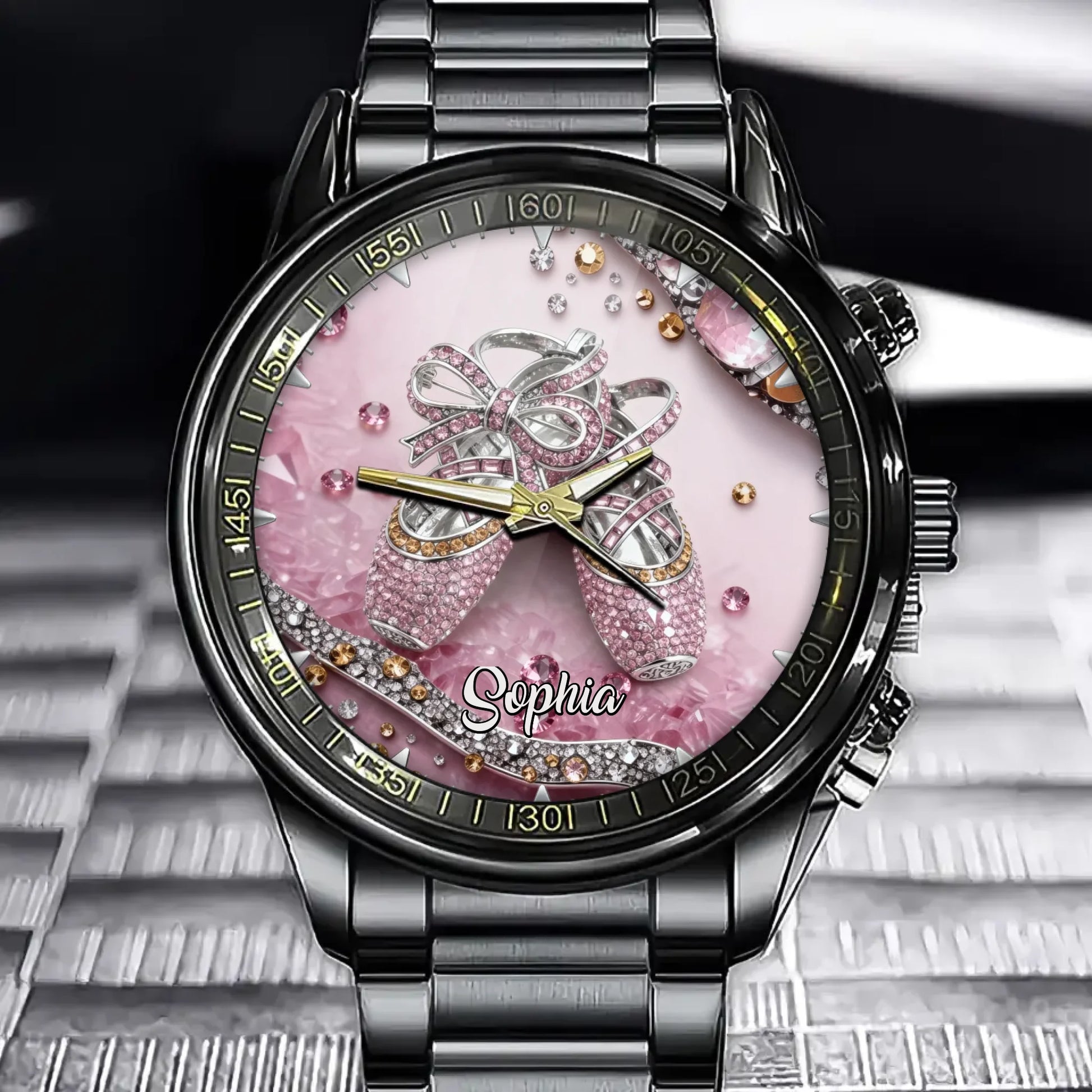 Personalized Ballet Shoes Watch – Custom Name Pink Crystal Women’s Gift