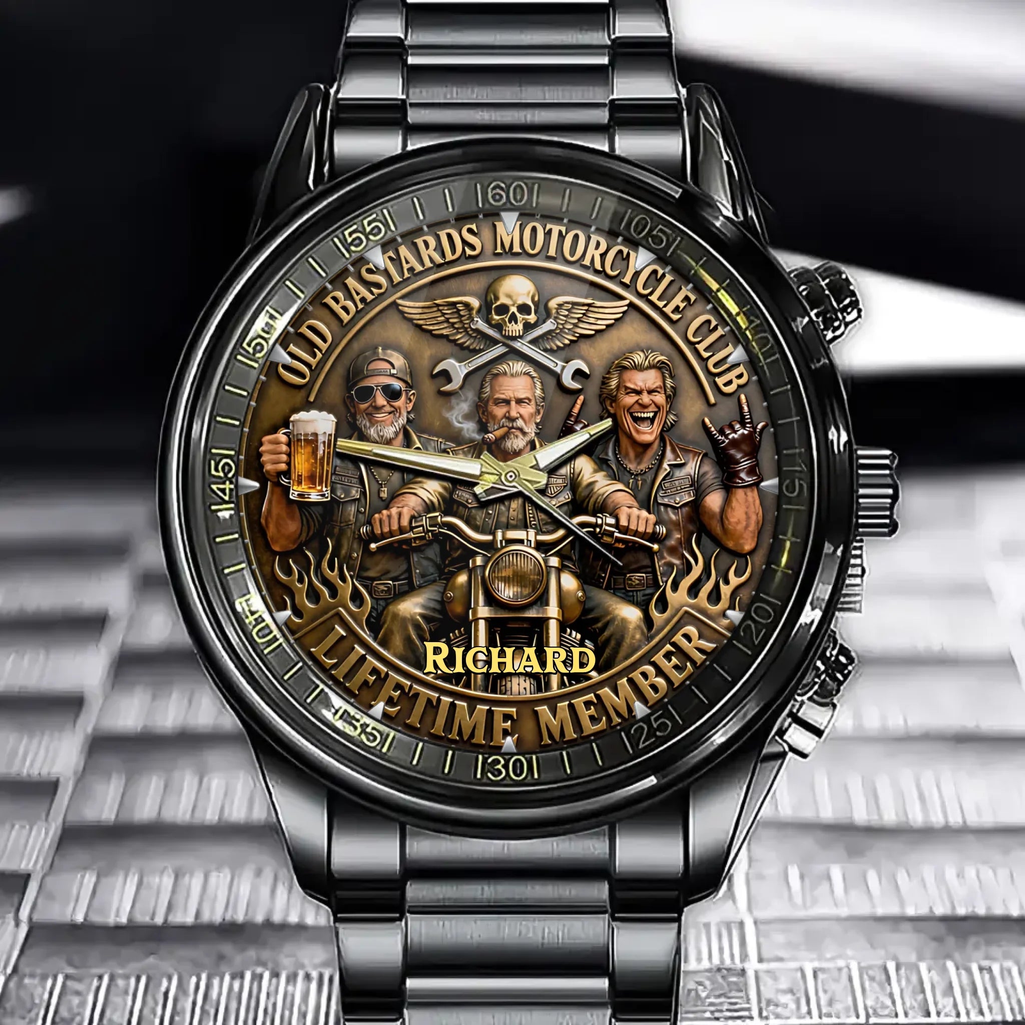 Personalized Biker Club Lifetime Watch - Old Bastards Theme with Custom Name