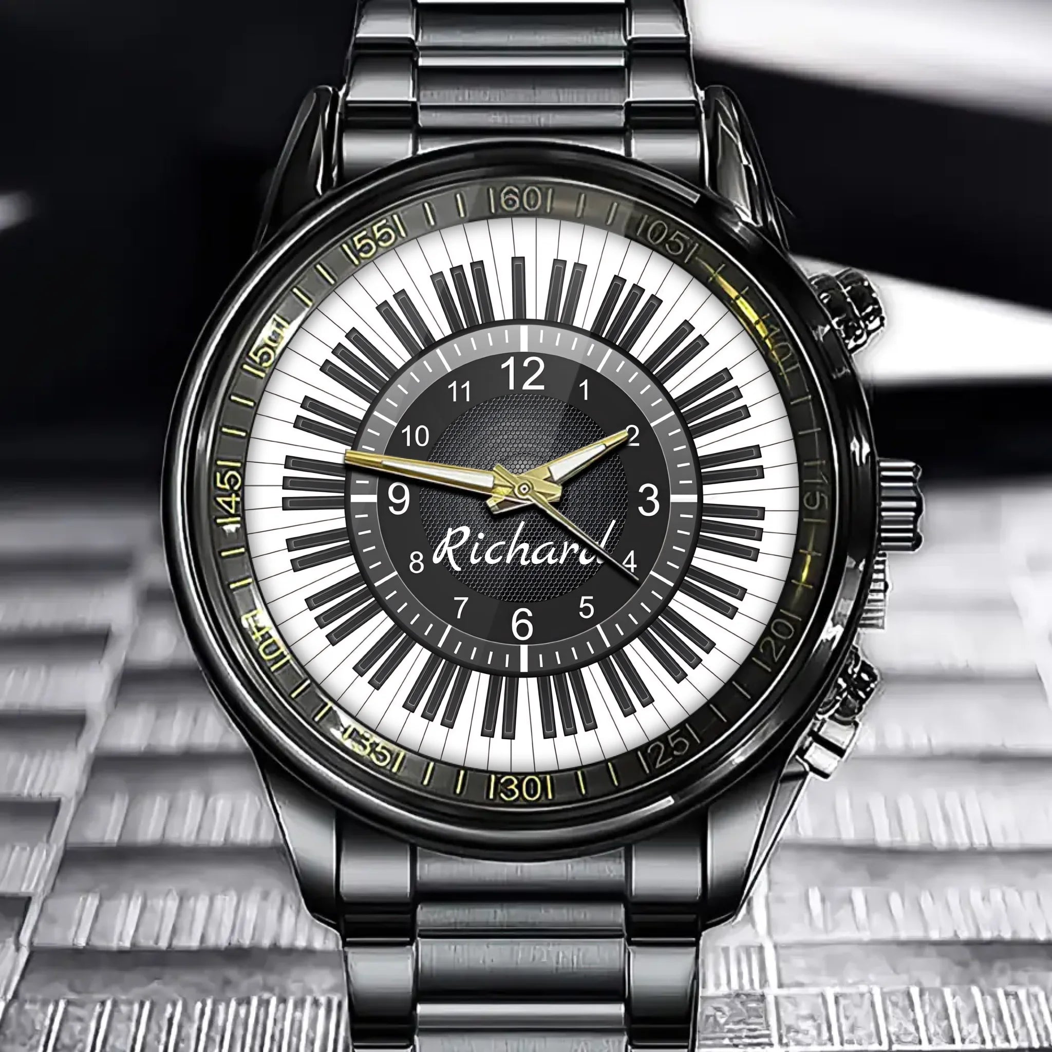Personalized Black and White Piano Keys Watch – Custom Name Design
