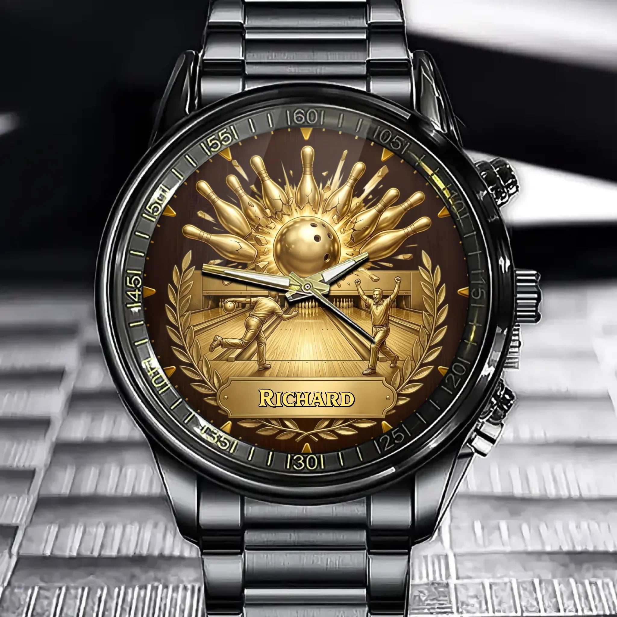 Personalized Bowling Watch with Custom Striking Pins and Ball Design