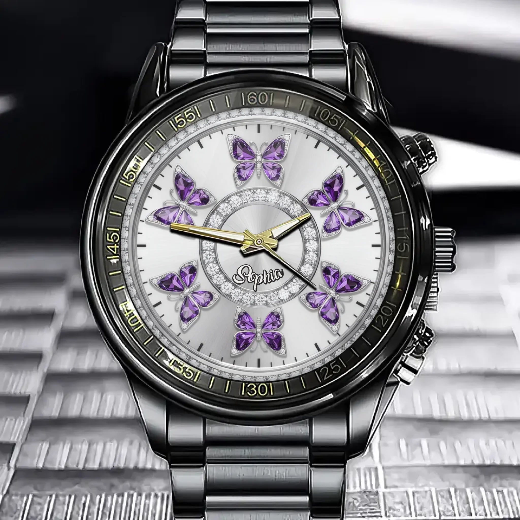 Personalized Butterfly Diamond Watch – Custom Name & Color Choice