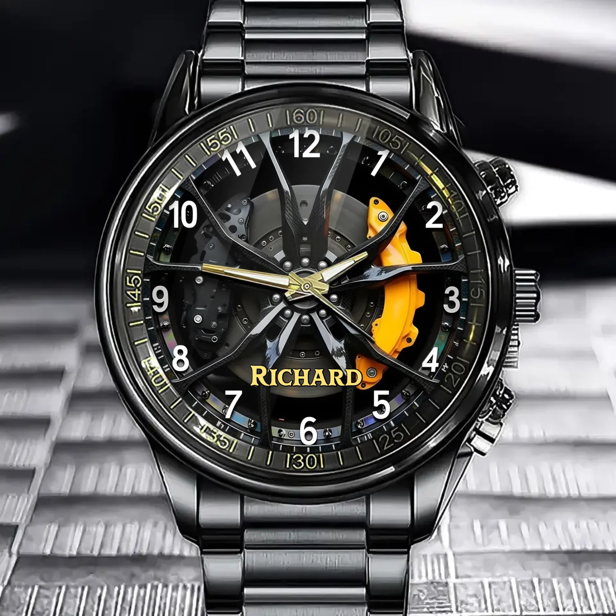 Personalized Car Wheel & Brake Watch - Automotive Themed Dial with Custom Name Option