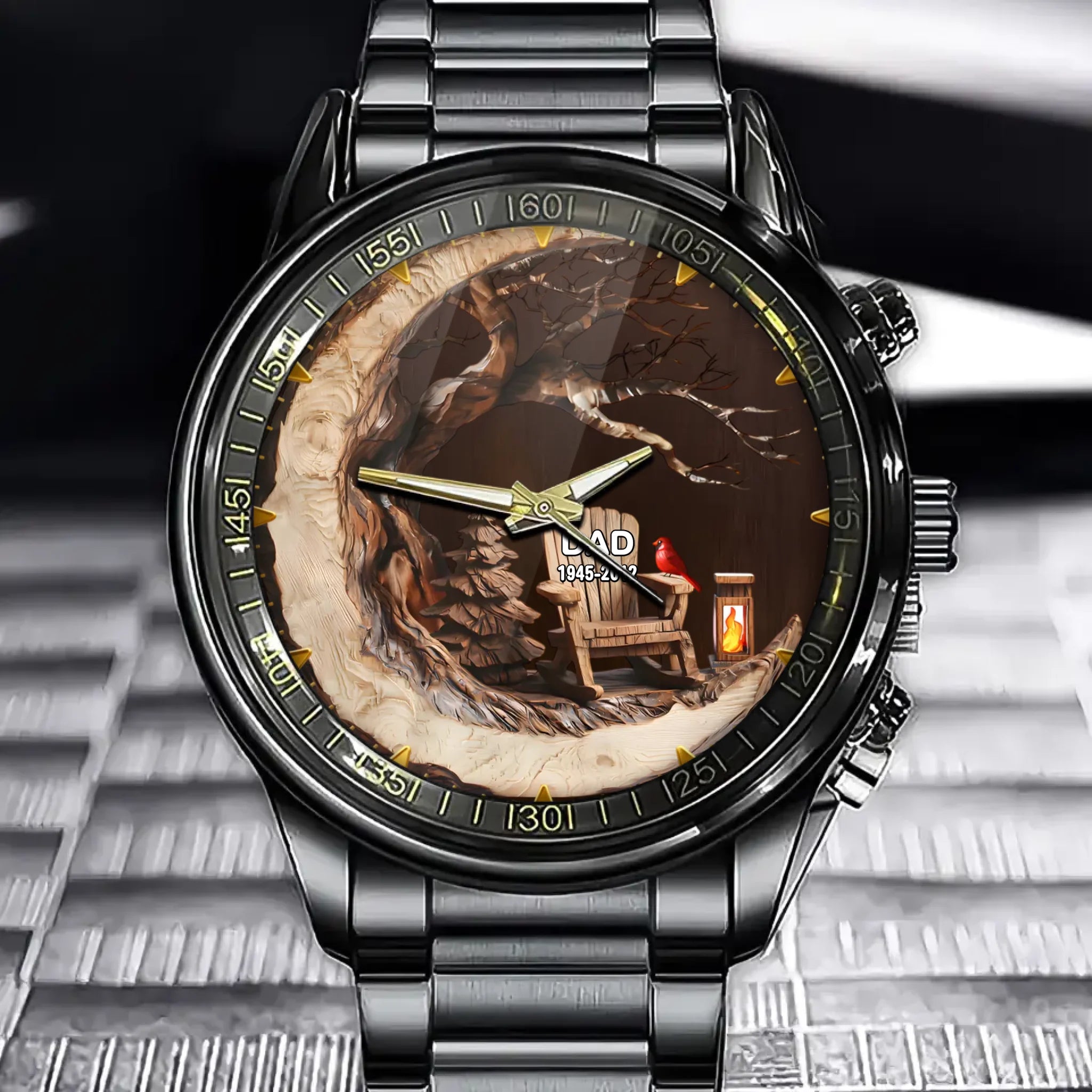 Personalized Christmas In Heaven Rustic Watch - Custom Name Engraved with Cardinal, Adirondack Chair & Rustic Tree Scene