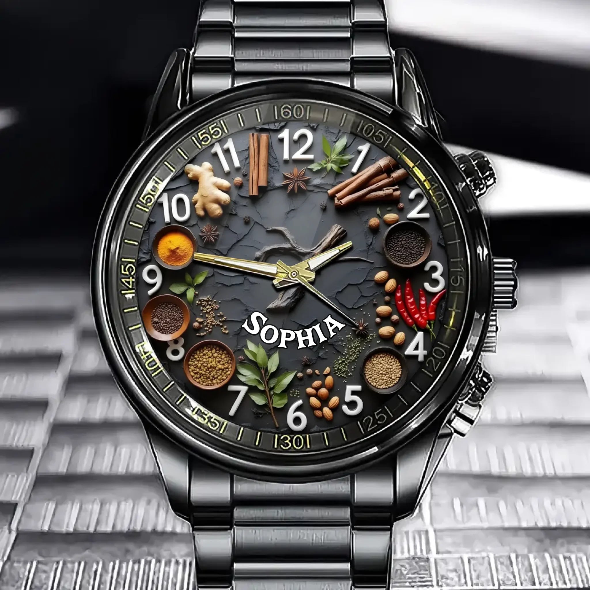 Personalized Cooking Enthusiast Watch - Spice Collection Design And Custom Name Personalization