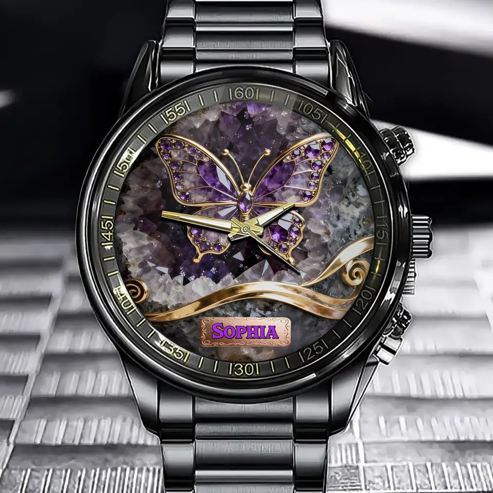 Personalized Crystal Butterfly Embellished Watch – Glowing Butterfly Adorned With Natural Gemstones