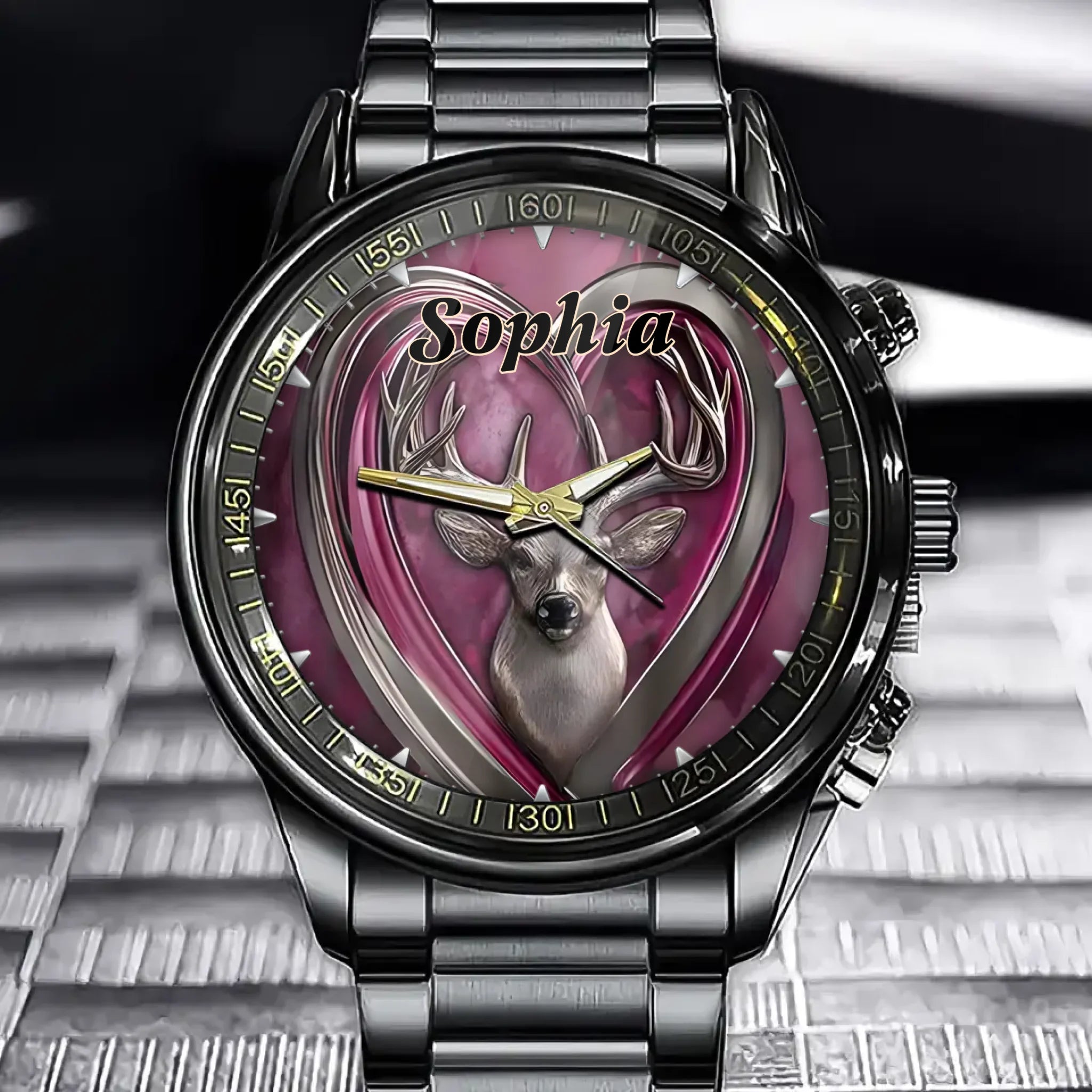 Personalized Deer Heart Pattern Watch - A Wristwatch For Wildlife Lovers