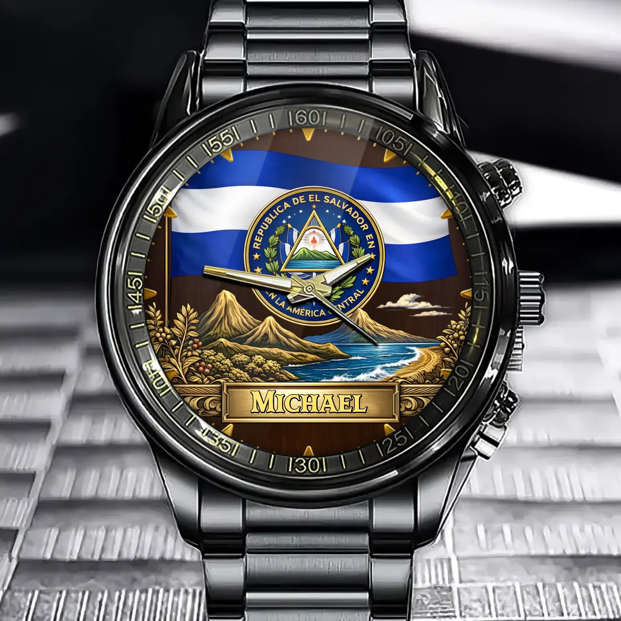 Personalized El Salvador Flag And Coat Of Arms Watch - A Gift For Those Who Love Cultural Pride.