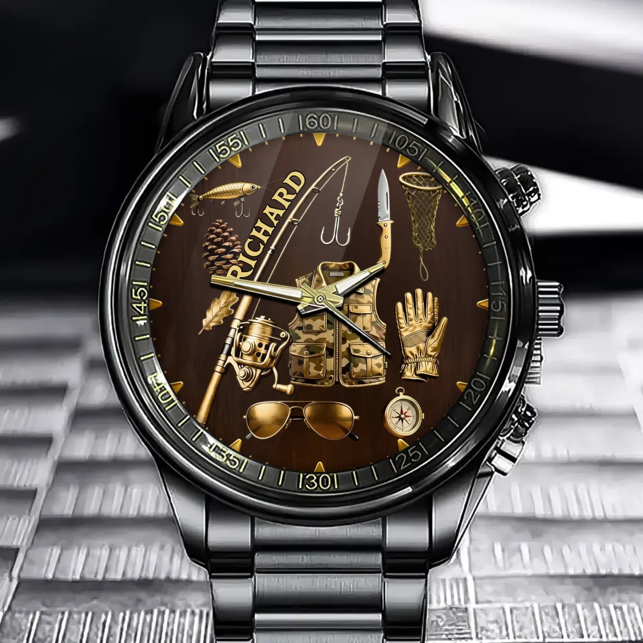 Personalized Fishing Enthusiast Watch - Outdoor Gear Dial with Custom Name Addition