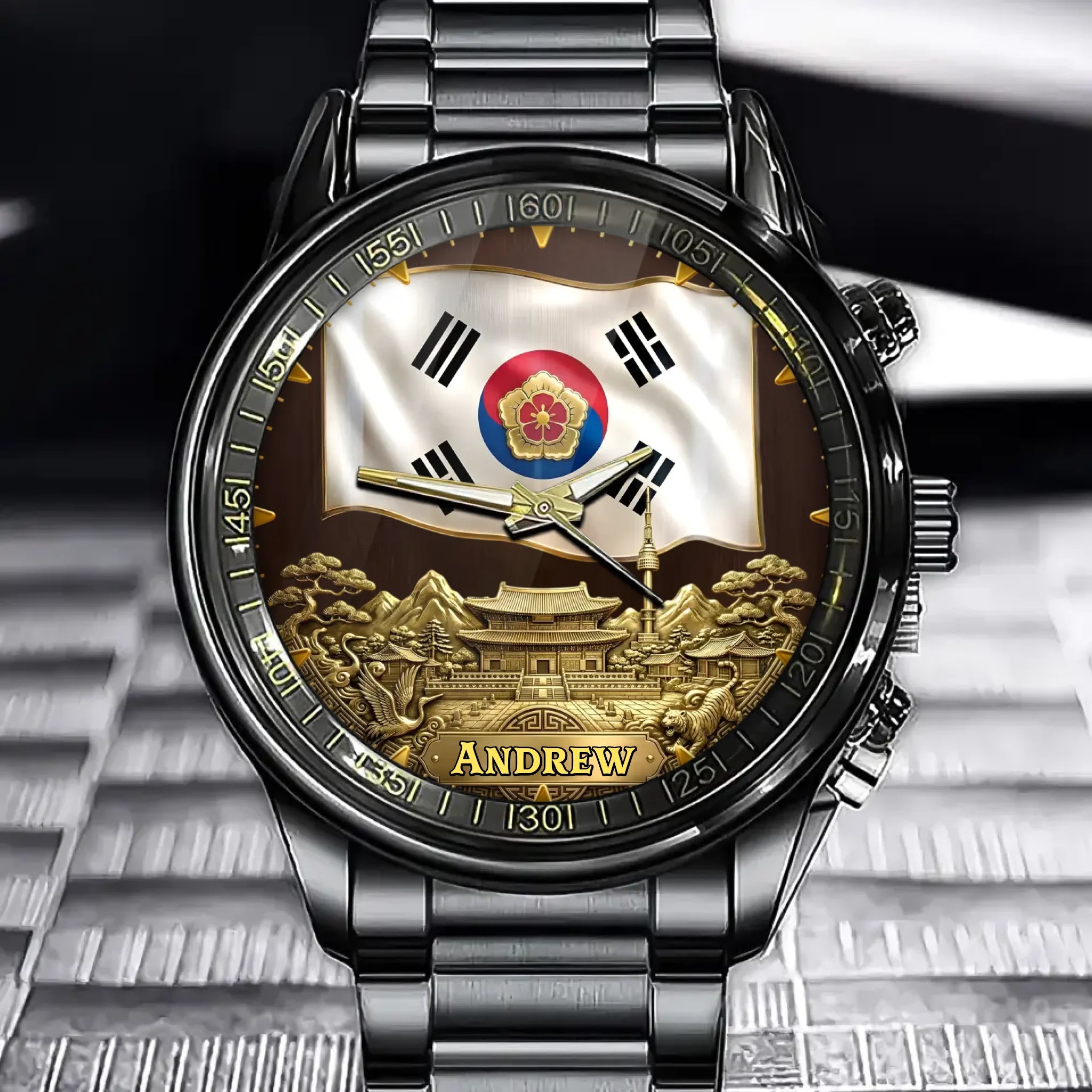 Personalized Golden Korea Legacy Watch – Custom Name, Cultural Symbols
