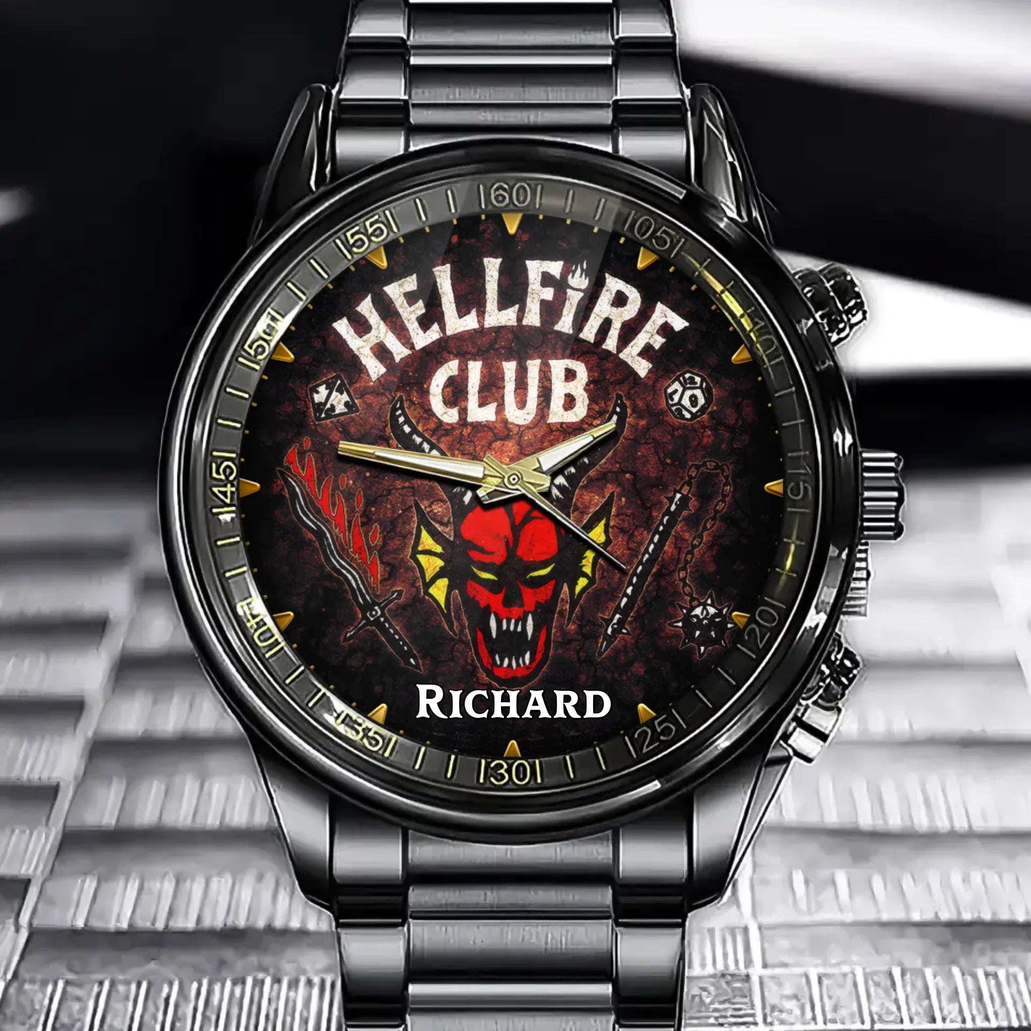 Personalized Hellfire Club Watch with Custom Name and Bold Demon Graphics