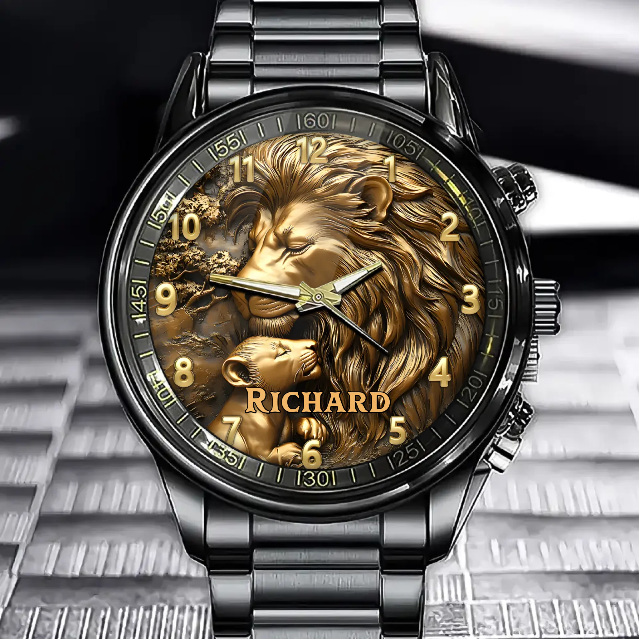 Personalized Lion Heart Watch - Father and Cub Lion Design