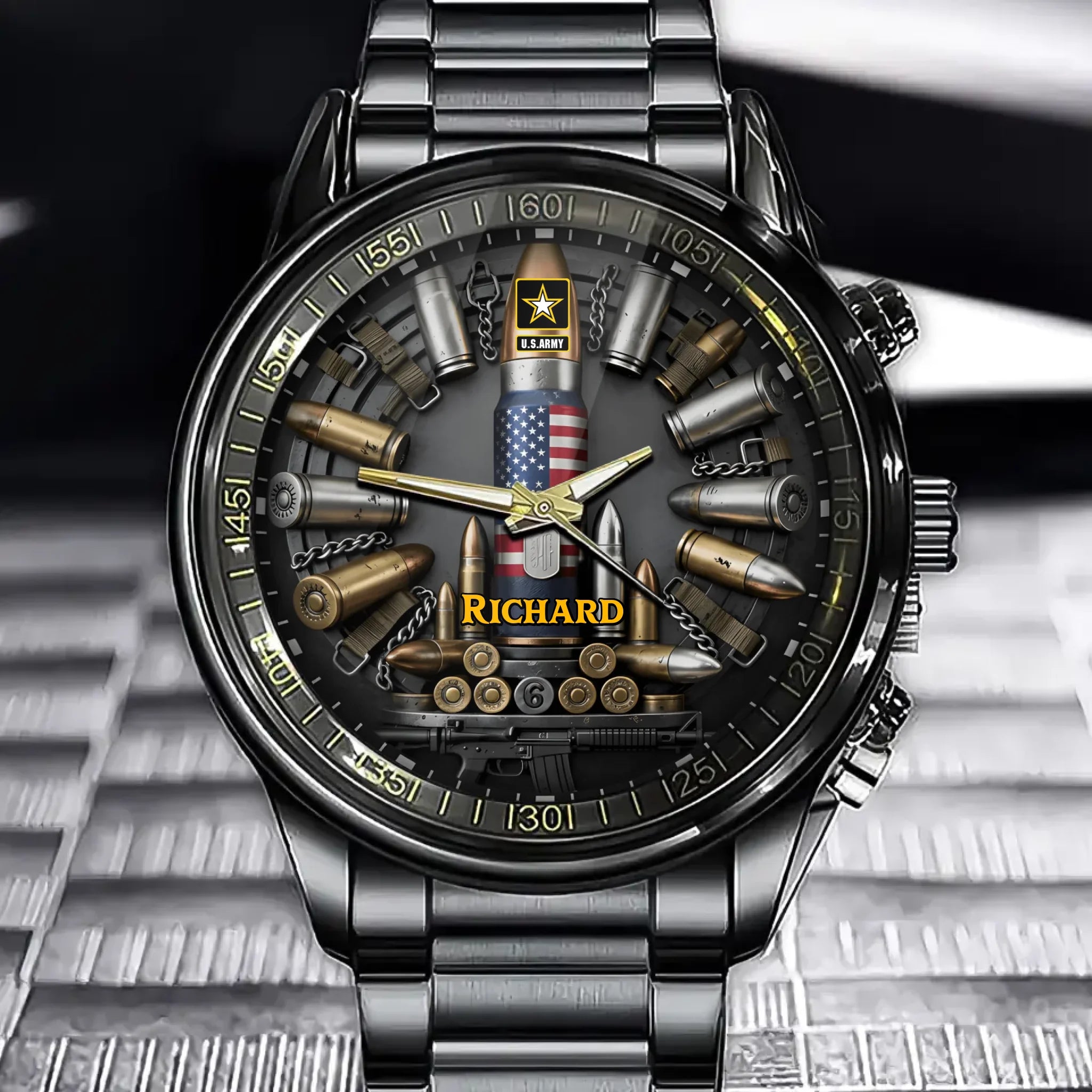 Personalized Military Bullet Watch - A Special Gift for Veterans. Customizable with branch of service and name.