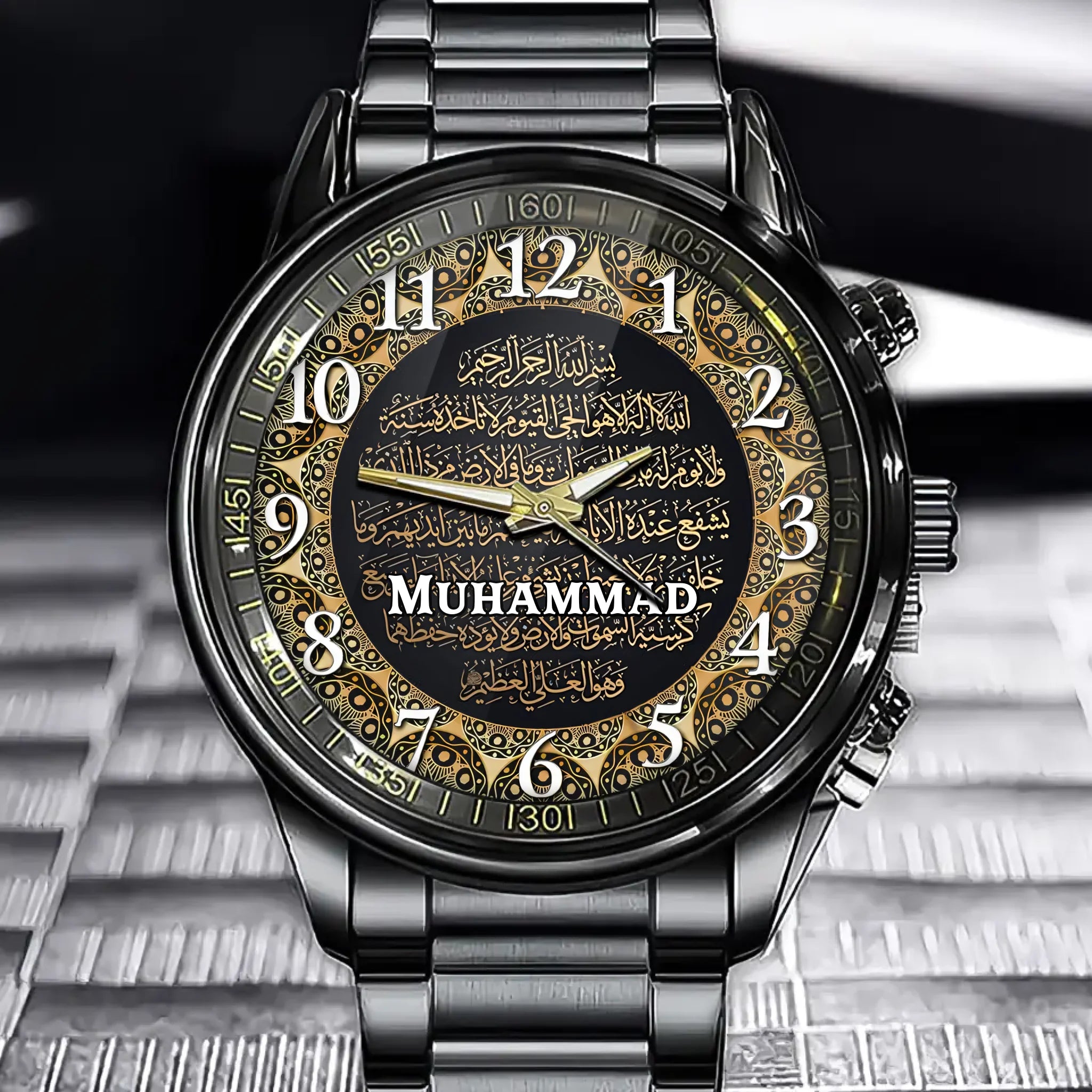 Personalized Muslim Watch Featuring Ayat al-Kursi - Elegant Islamic Gift