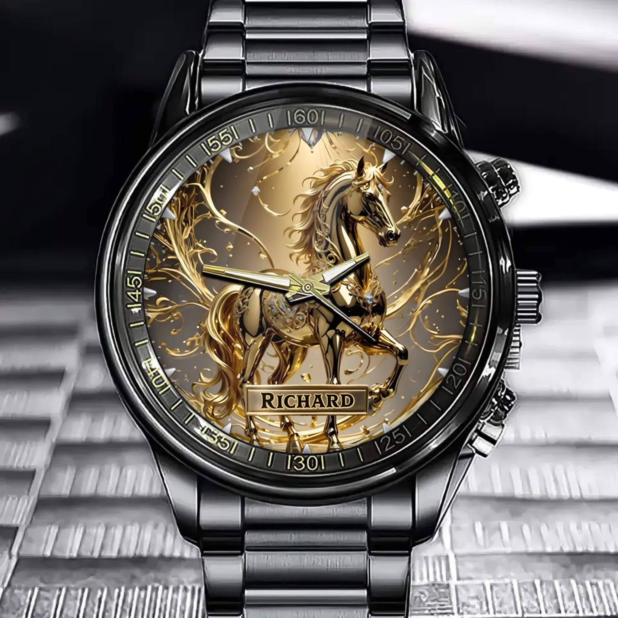 Personalized Name Golden Stallion Watch - Ride the Golden Horse of Time