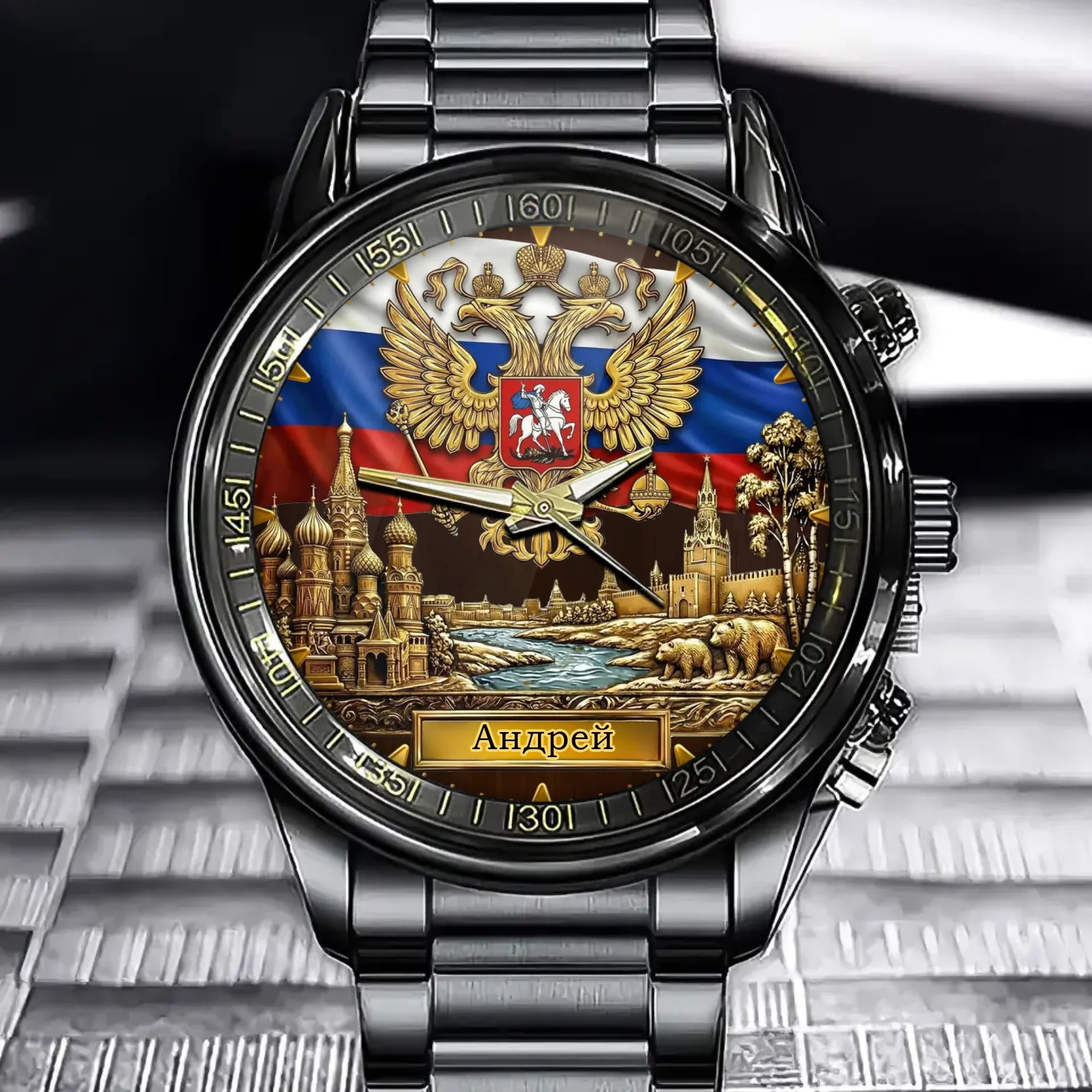 Personalized Russia Flag Emblem Watch with Name – A Russian Pride Gift