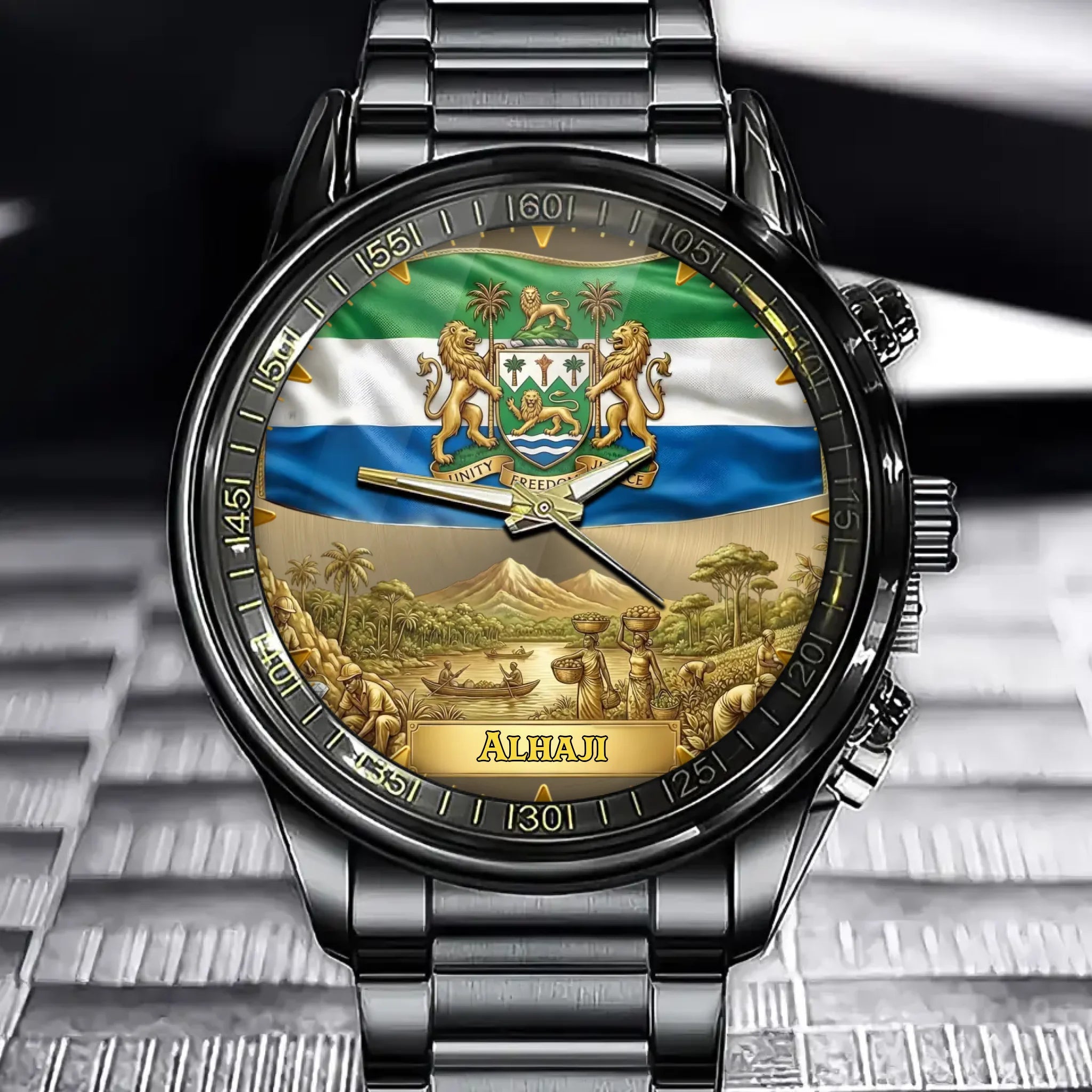 Personalized Sierra Leone Coat Of Arms Watch - Custom Engraving For National Pride