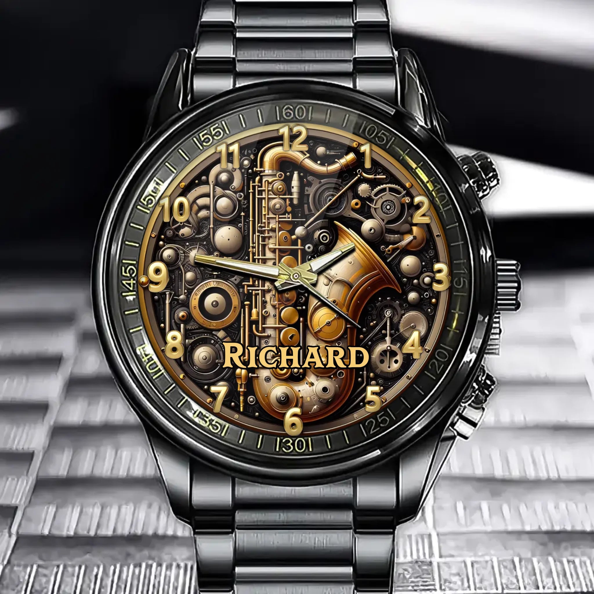 Personalized Steampunk Saxophone Metallic Art Watch