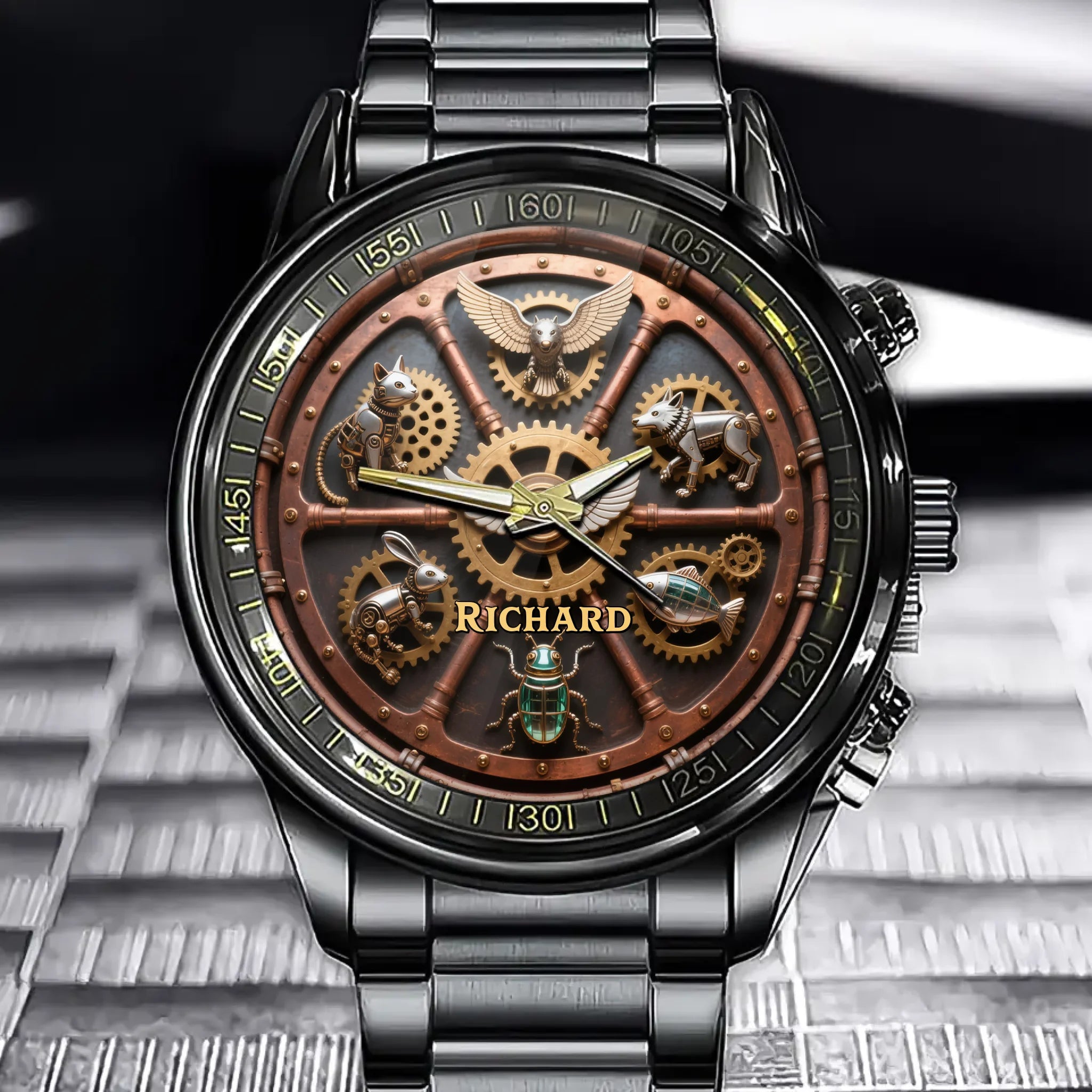 Personalized Steampunk-Themed Animal Watch - Add Your Name for a Special Look