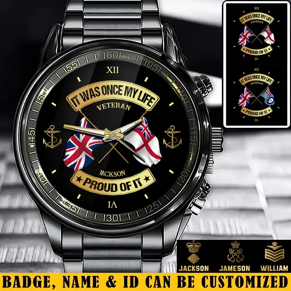 Personalized UK Soldier/ Veteran With Name and Rank Black Stainless Steel Watch