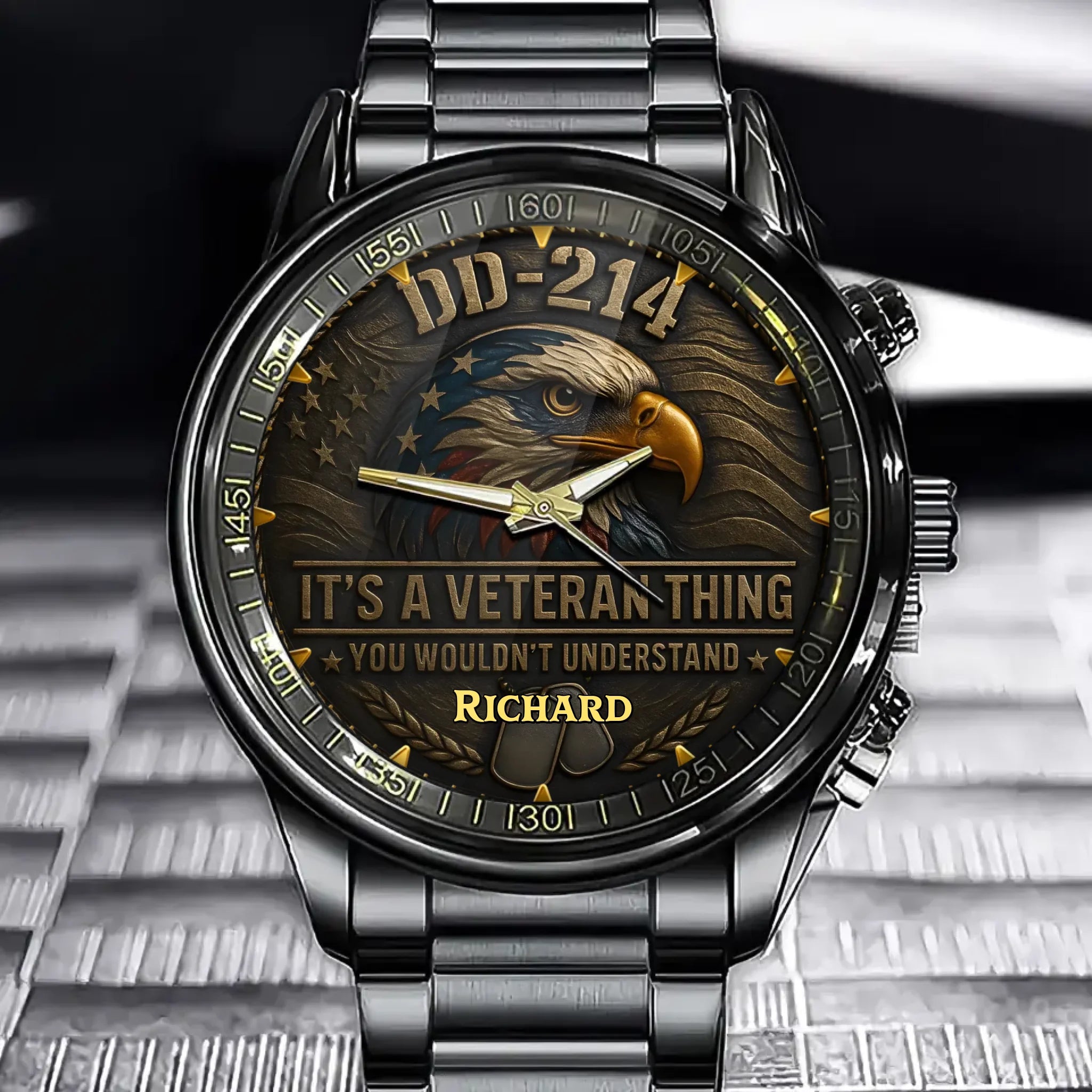 Personalized Veteran's Watch - Featuring A U.S. Eagle And Military Tag With Customizable Name