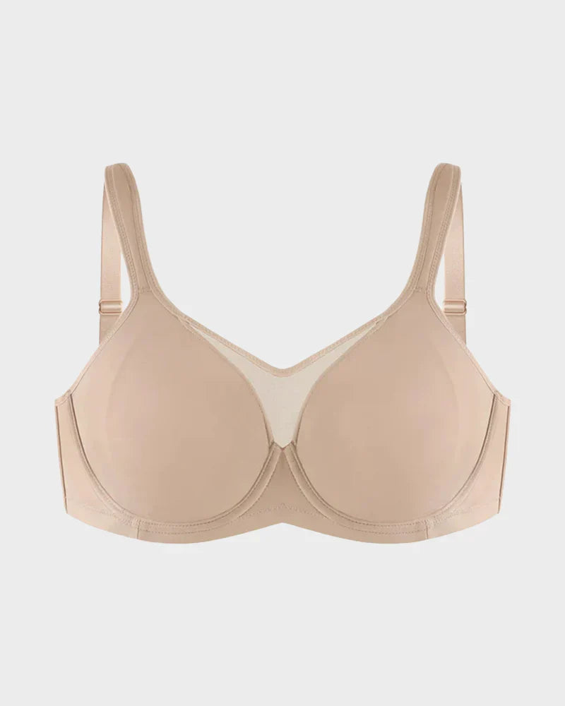 Introducing the ultimate blend of comfort, support, and style—designed specifically for fuller busts. This full-coverage, unlined underwire bra offers a smoothing fit that minimizes without compromising shape. Crafted with cooling, breathable fabric and wide straps, it's perfect for all-day wear. Experience the confidence of a sleek silhouette and the comfort you deserve.