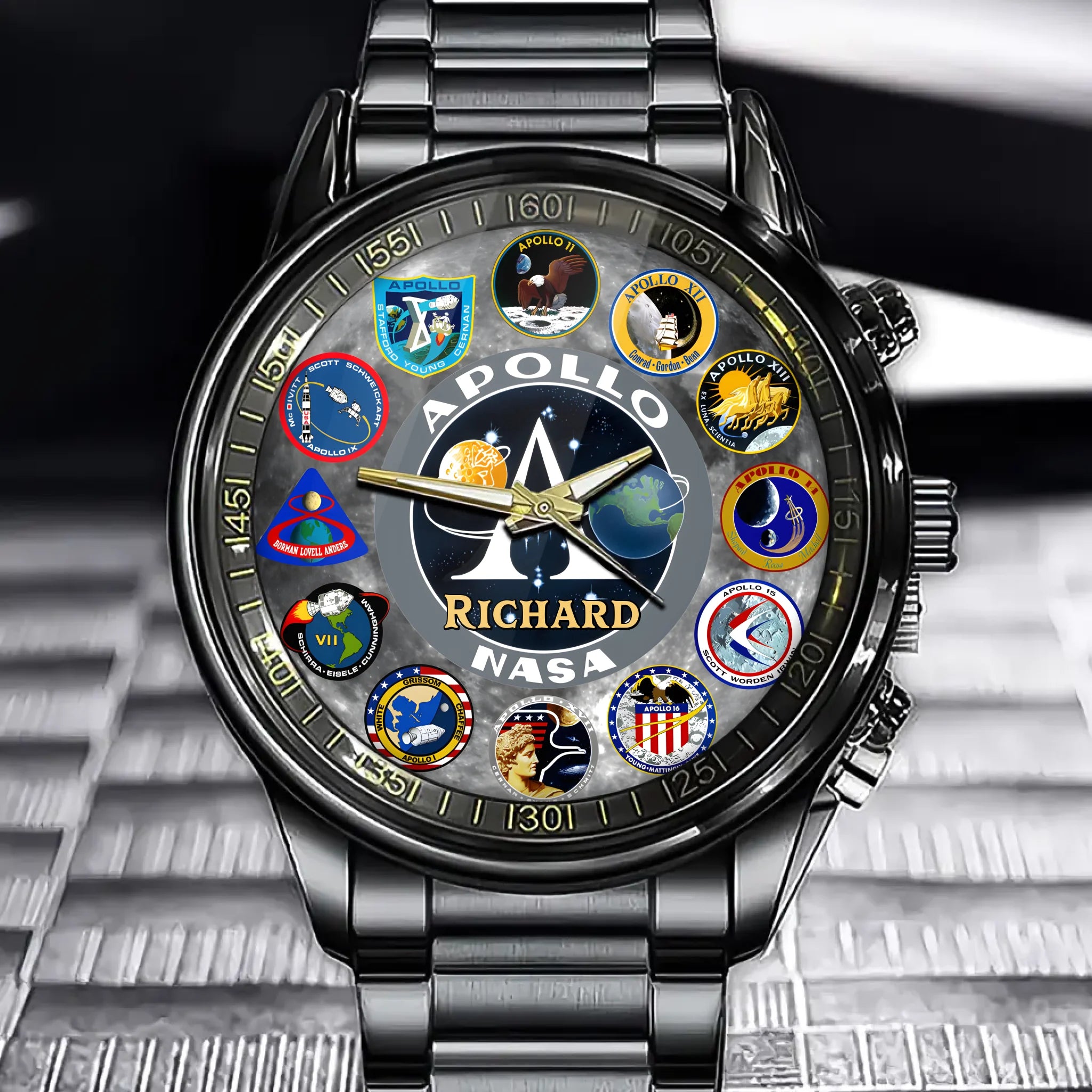 Timeless Apollo Mission Watch – Custom Name Edition Honoring Space Pioneers